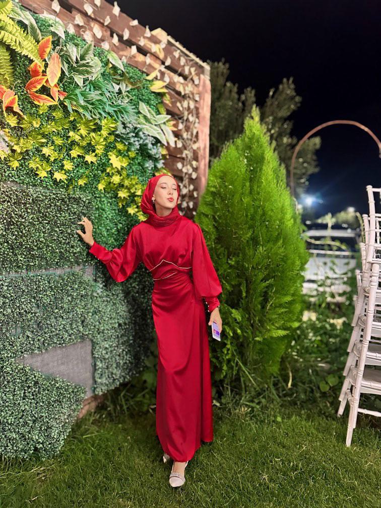 Bu eşsiz tesettür abiye, zarif inci detayları ve saten kumaşı ile göz kamaştırıyor. Bel kısmındaki üçgen inci detaylarıyla dikkat çeken bu abiye, modern ve sofistike bir tasarıma sahiptir. Yüksek kaliteli saten kumaşı, lüks bir his sunarak özel günlerinizde şıklığınızı tamamlar.